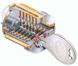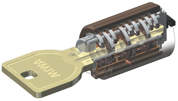 機械やエンジンを始動する場合にも鍵が使われる。人身や財産の保護、保安などの目的で用いるモノ。